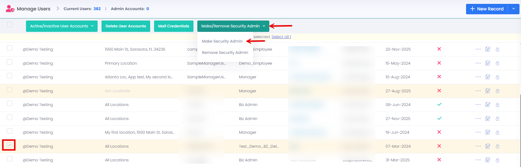 After creating the security role, you must create a user who will act as the Security Manager. Once the user is created, assign the Security Admin role to that user. When a security token is issued, it is sent only to the Security Admin. This token is required to approve and add the Security Manager’s IP address to the approved IP list.